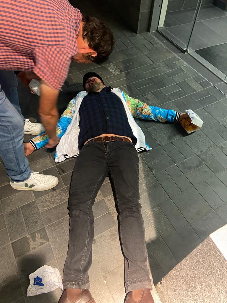 - Hutch falling asleep on the footpath and being rescued